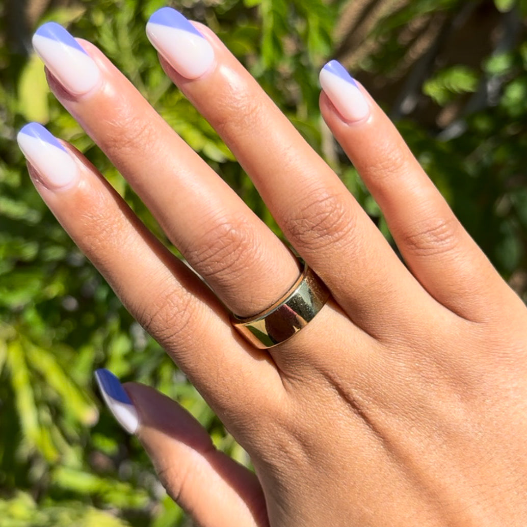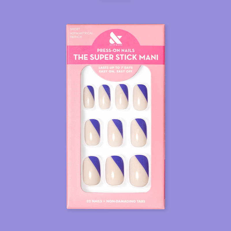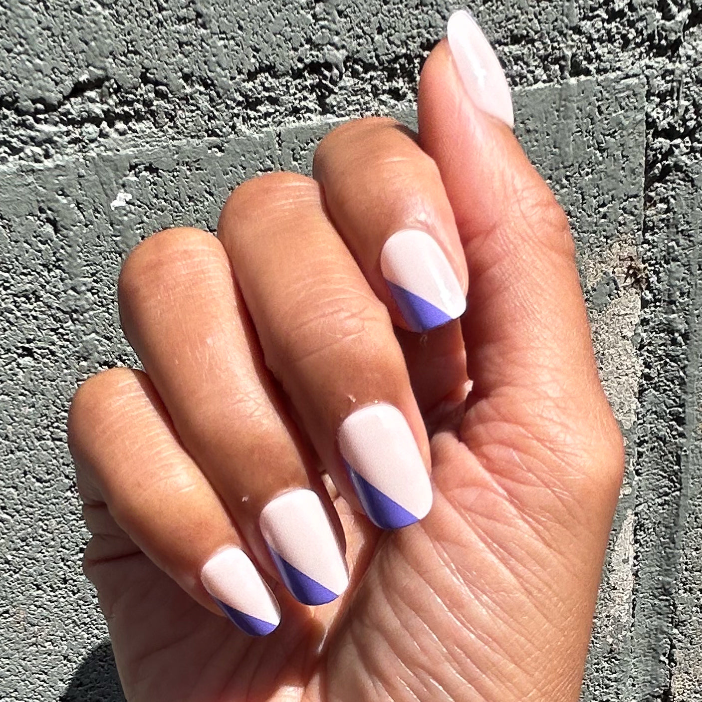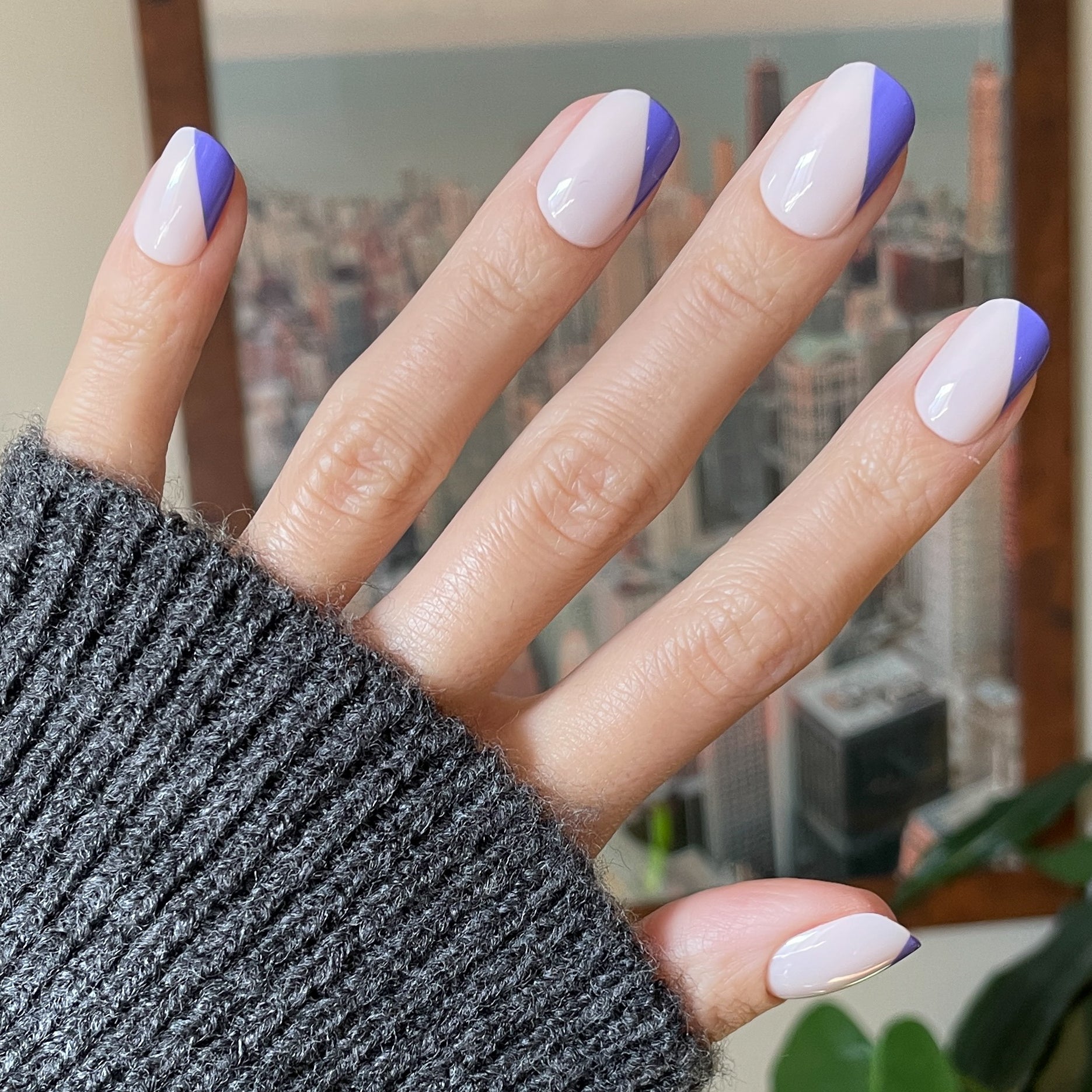 An asymmetrical indigo French mani.