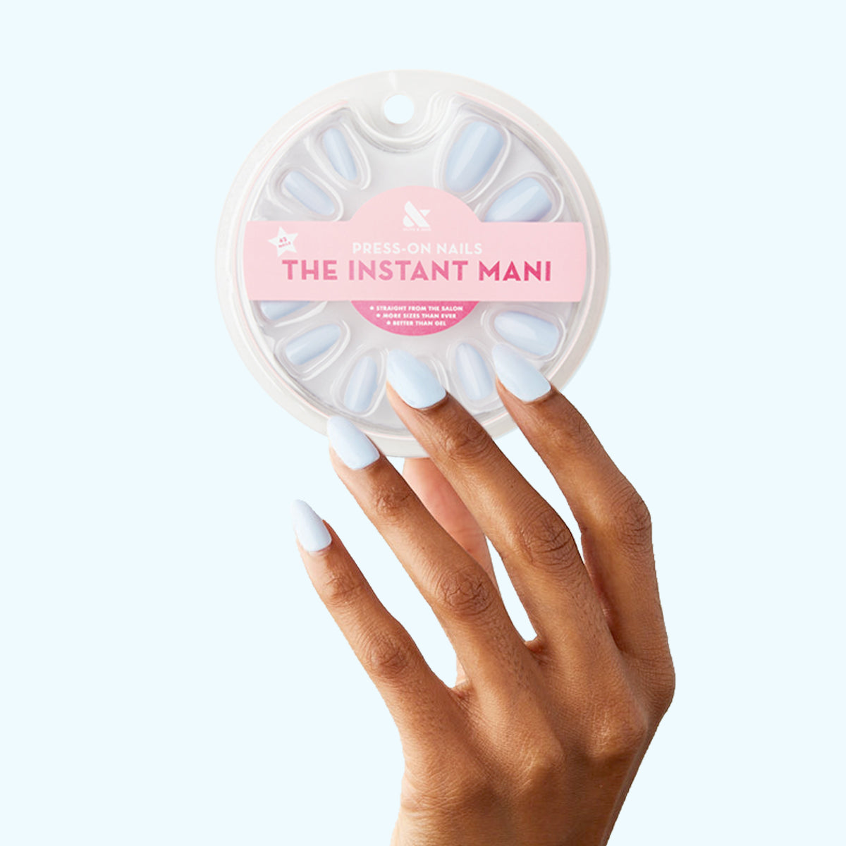 The ideal. icy light blue in a medium almond shape. The pastel mani of our dreams.