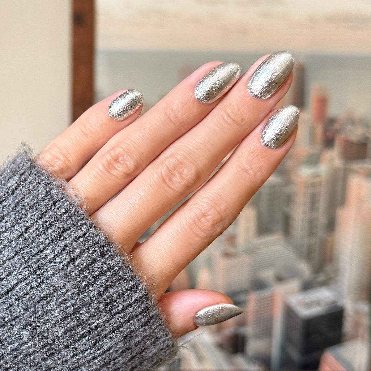 A crushed metallic silver foil shimmer that you’ll want to open again and again.