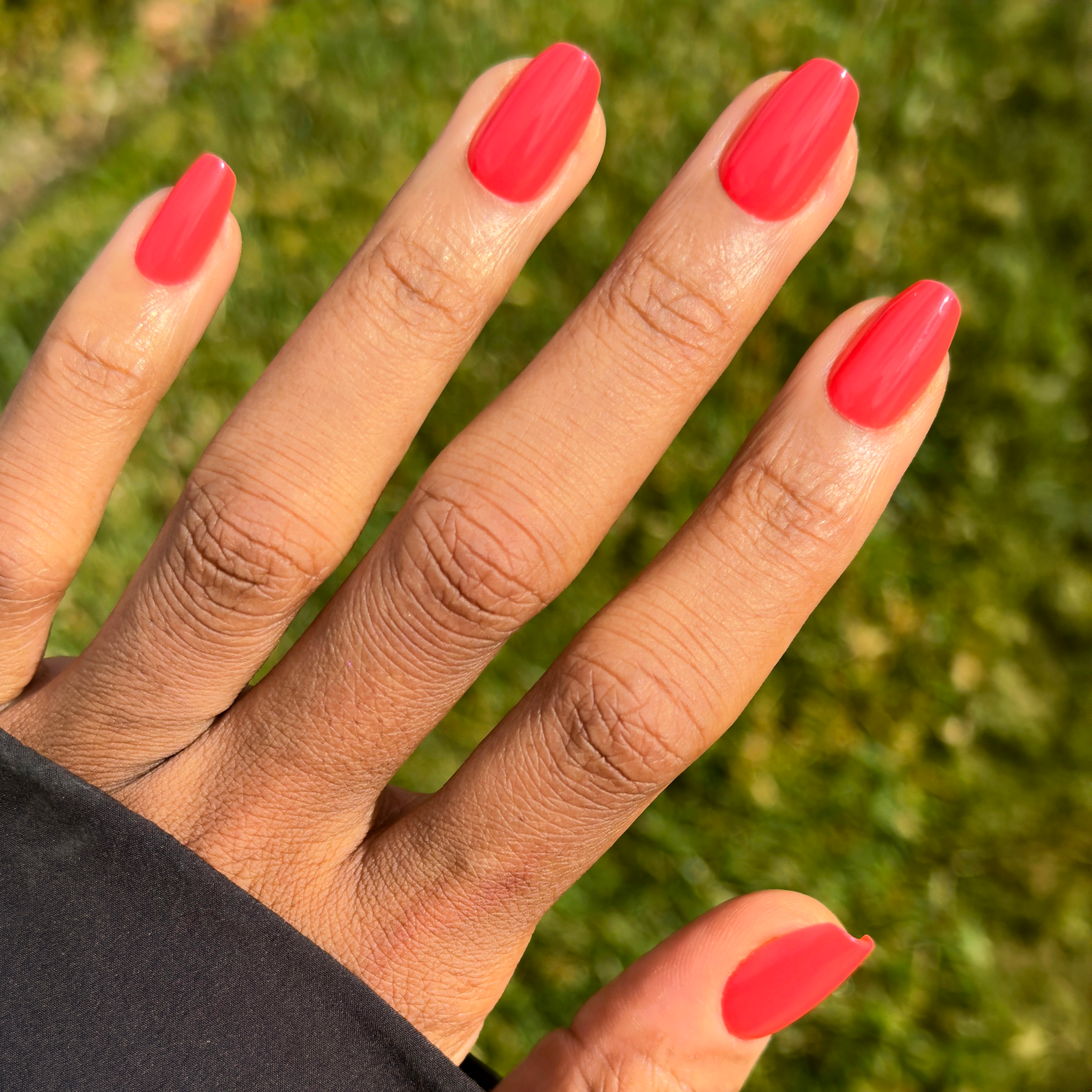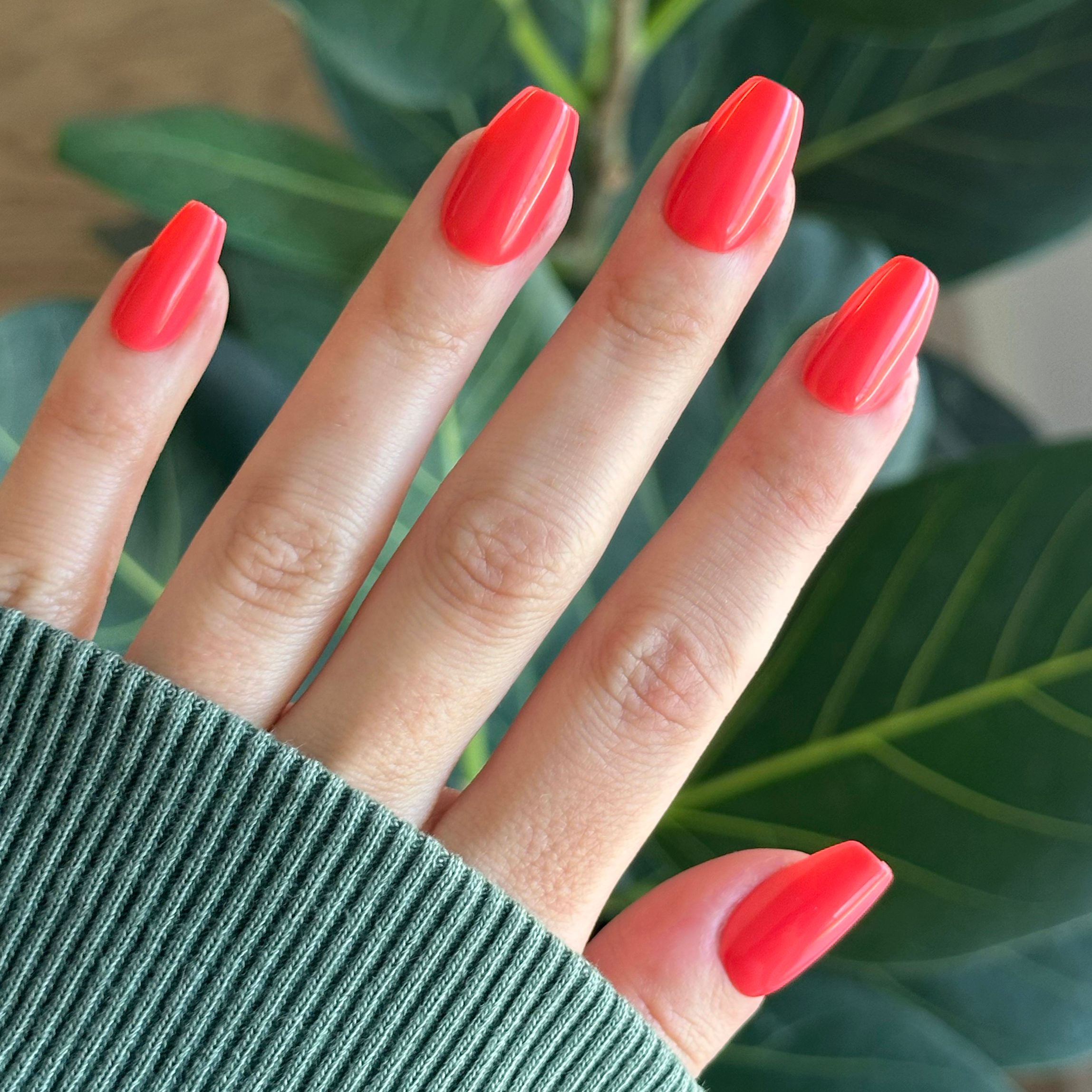 A juicy watermelon red in a medium coffin shape that is always here for a good time.