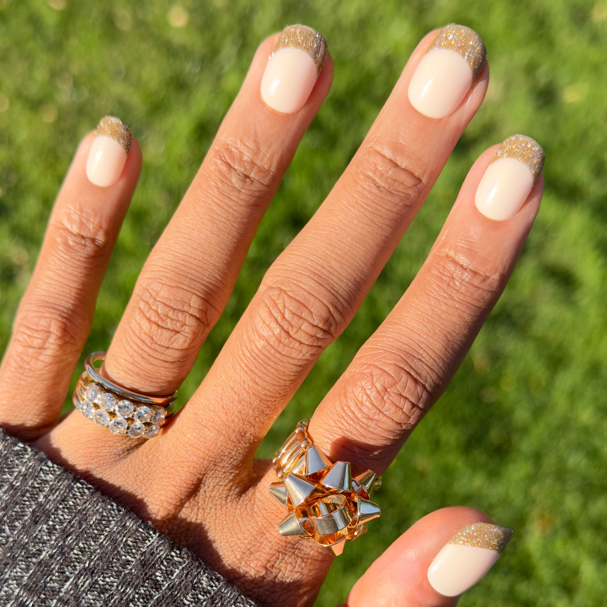 Gold Glitter French – Tab Press-On | Short | Squoval