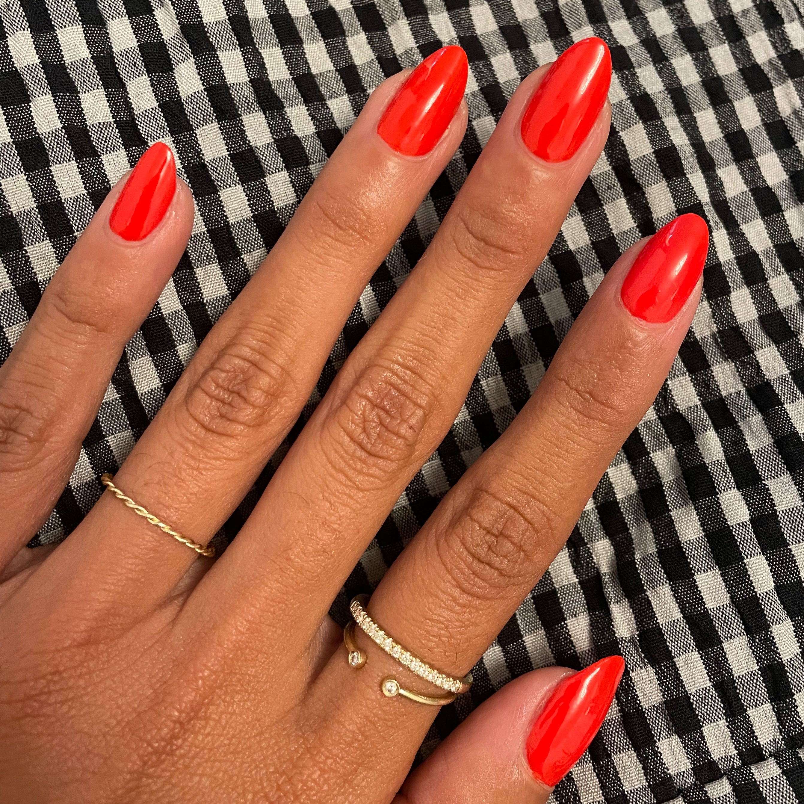 A bright cranberry for manis and pedis that are ready for their jumbotron moment.