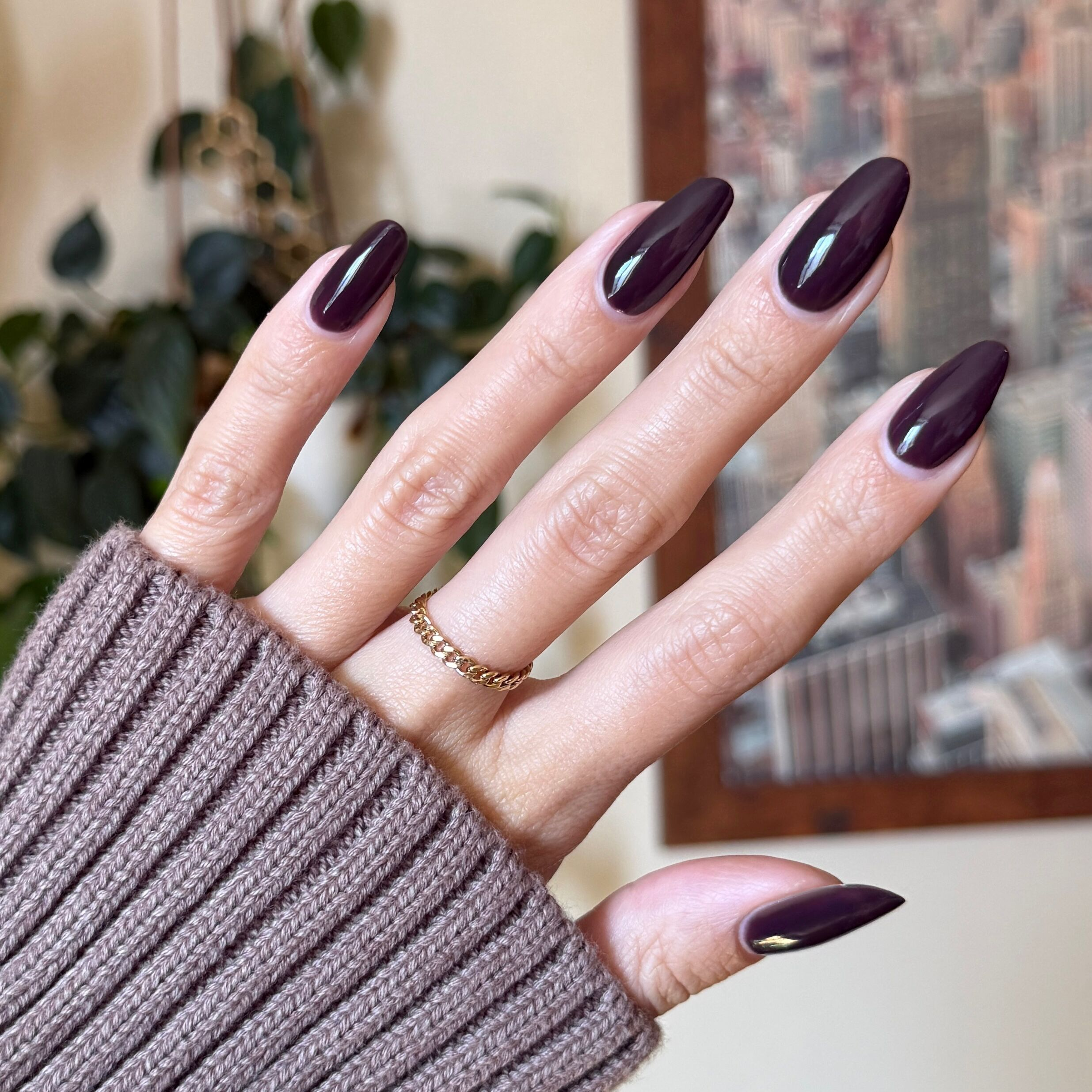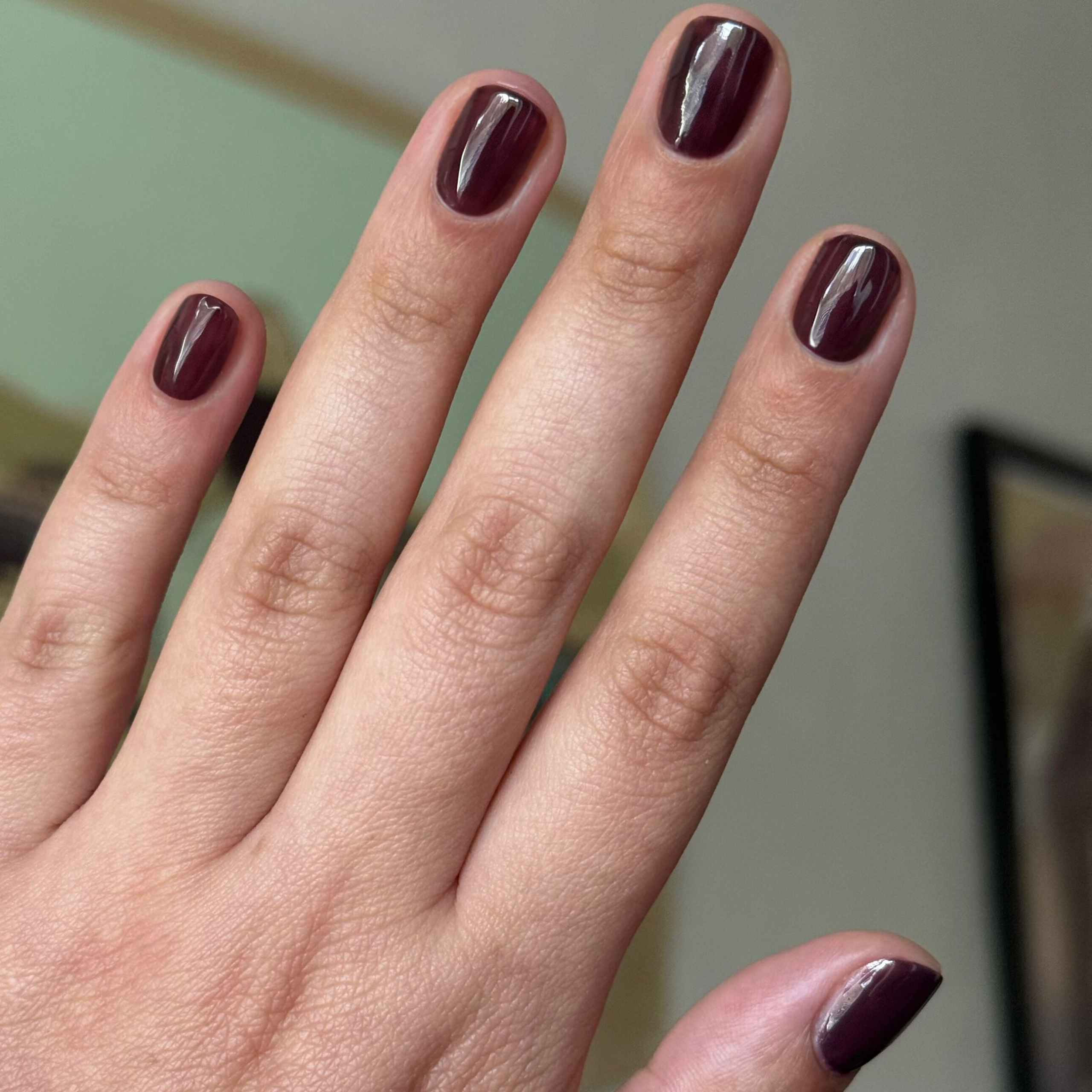 An ultra dark maroon-brown for the coziest. moodiest manis.