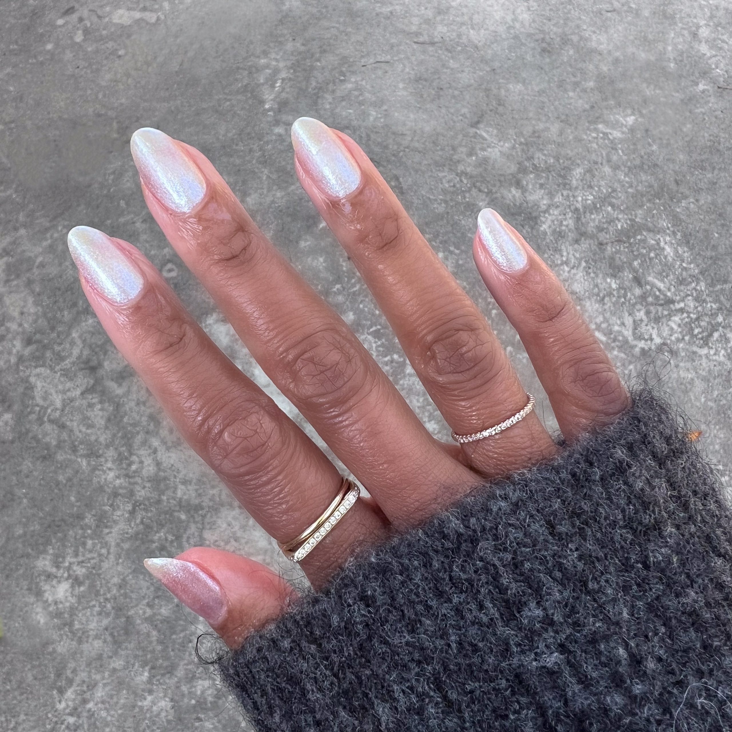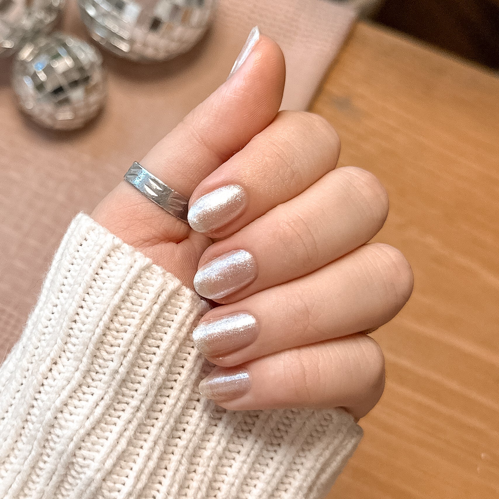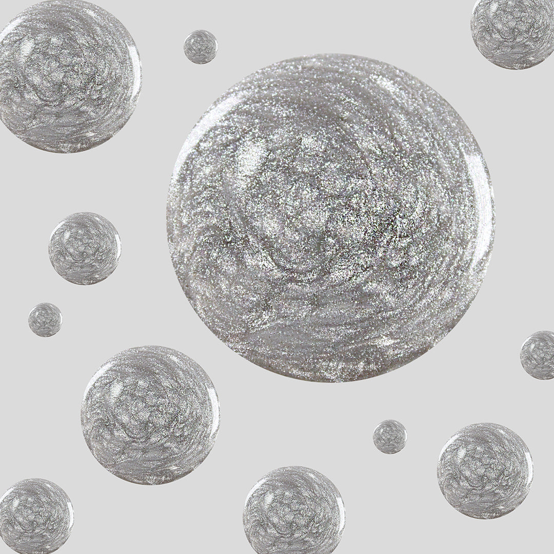 An ultrafine silver glitter polish in a clear base that’s all sparkle. all the time.