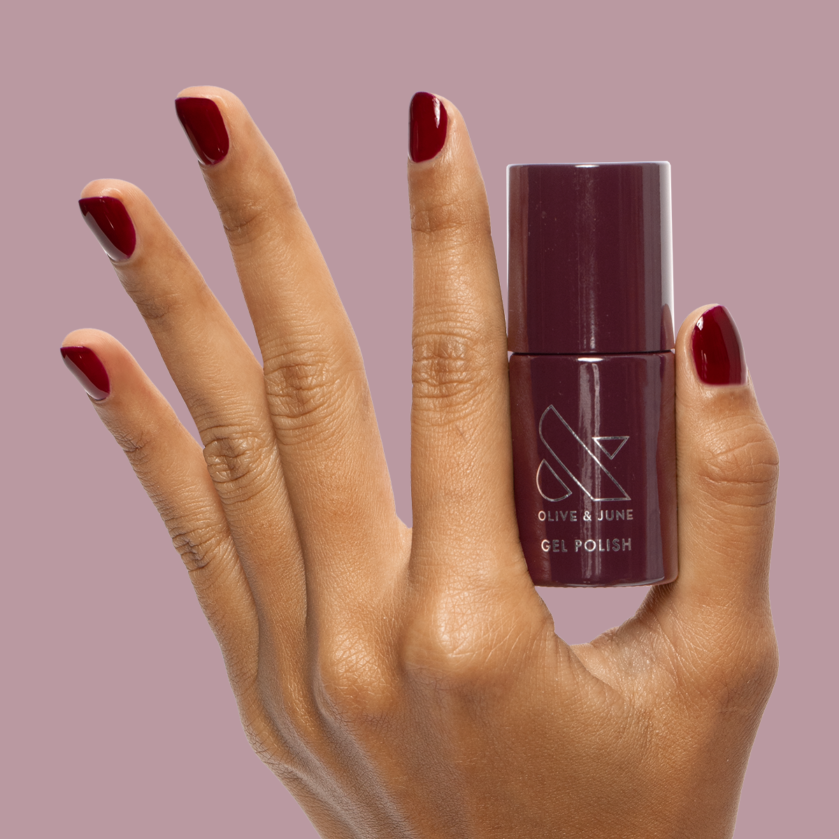 A dark ruby gel polish for a rich red mani.