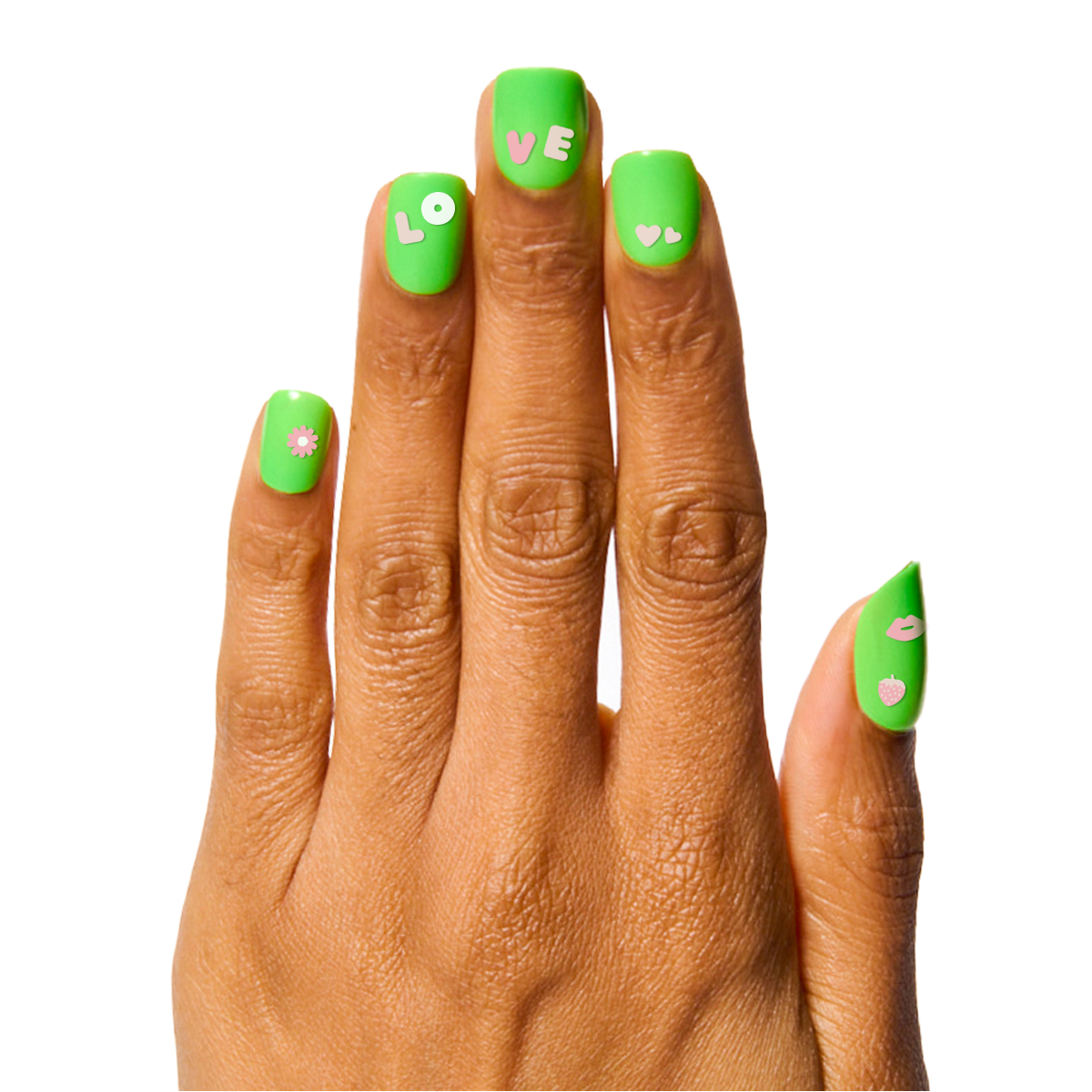 Let your mani do the talking. Express yourself with these pink and white bubble letter nail art stickers. What would your nails say? xoxo
