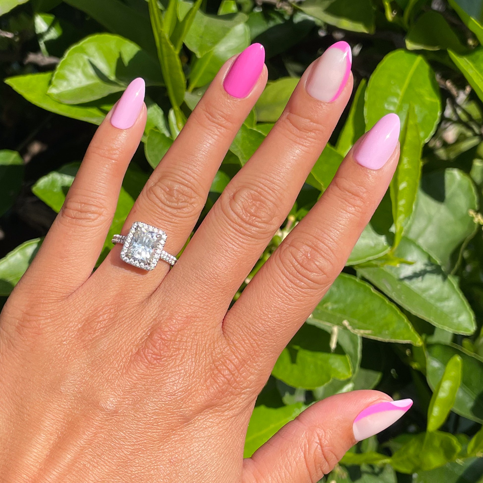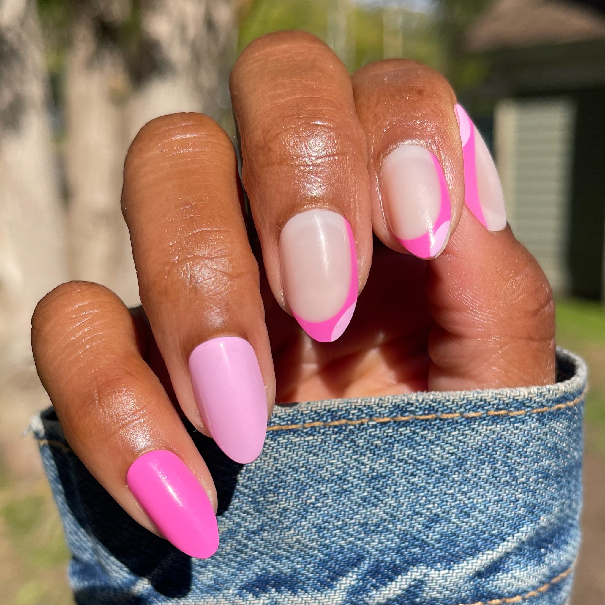 A celebration of all things pink and french in medium almond shape.