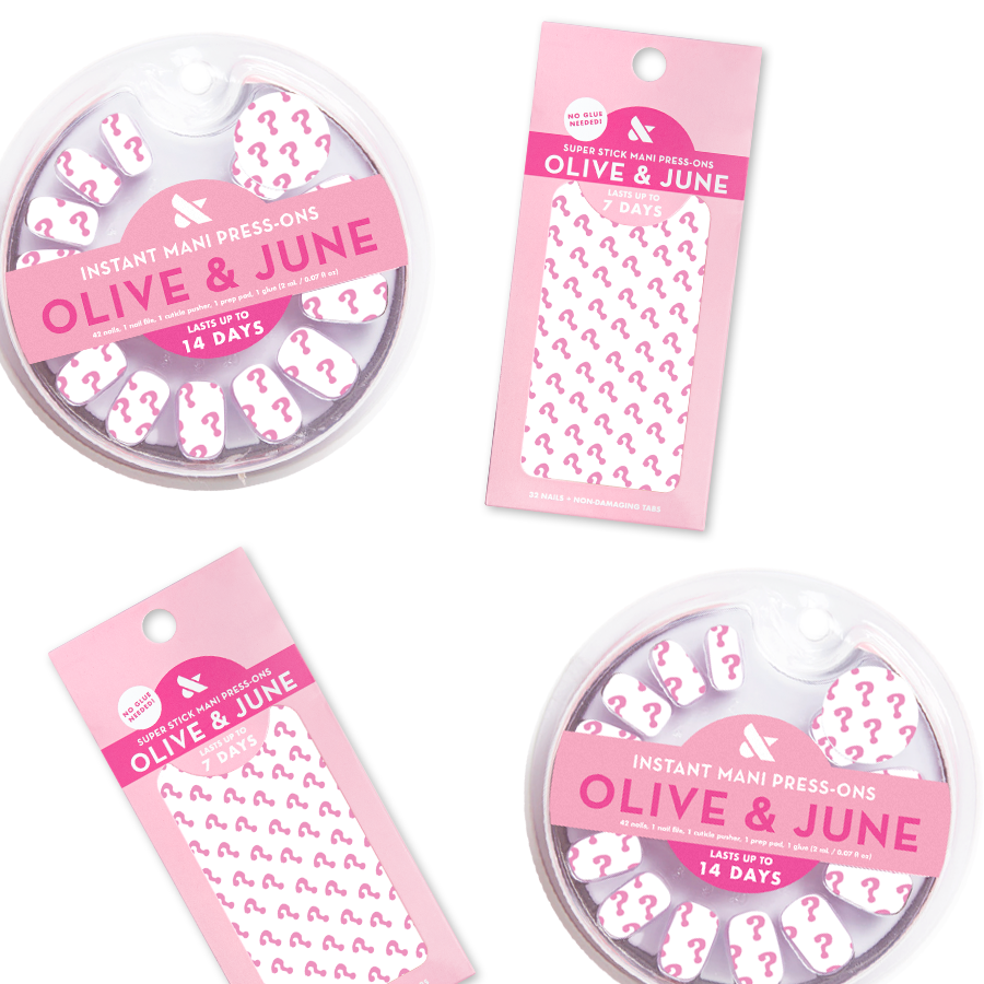 Surprise! It’s a box of mystery O&J press-ons and more valued at over $75. Featuring a mix of bestselling items for a limited time. What will you find?