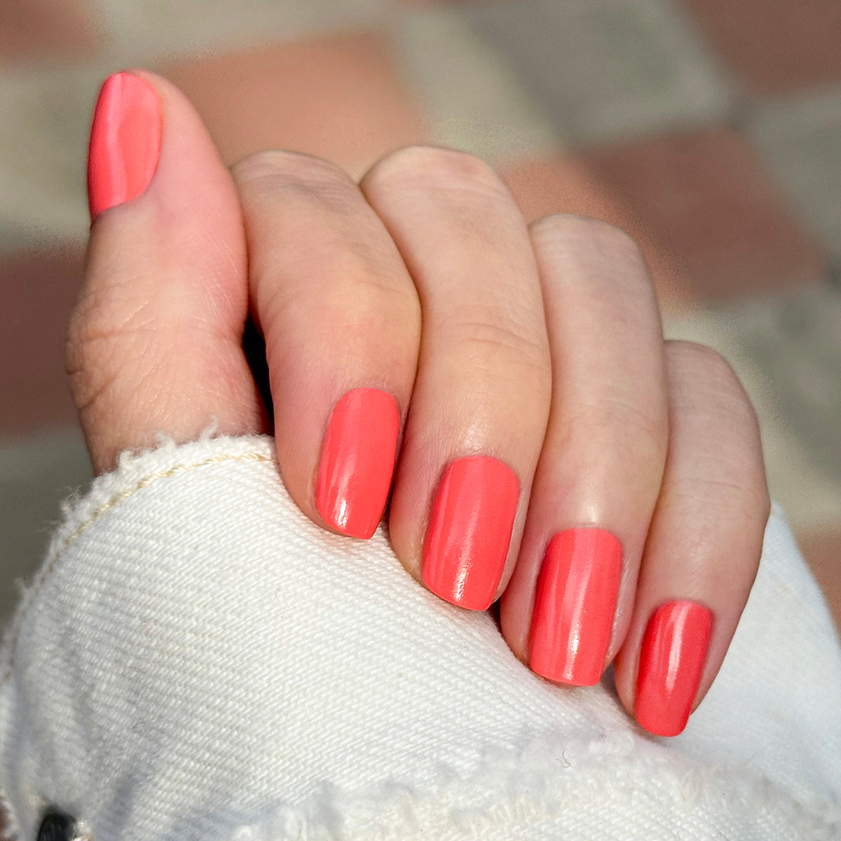 A bright pop of coral inspired by the pinky-orange hues of the western sky.