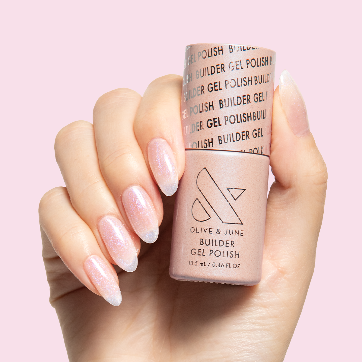 A sheer pink iridescent builder gel that glazes every mani in subtle shimmer.