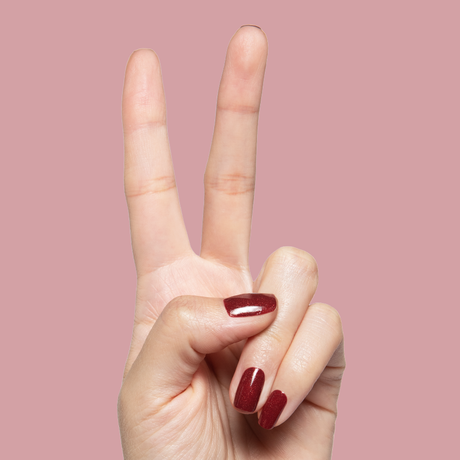 A deep red with shimmery microglitter that’s our secret recipe of super moody and sparkly.