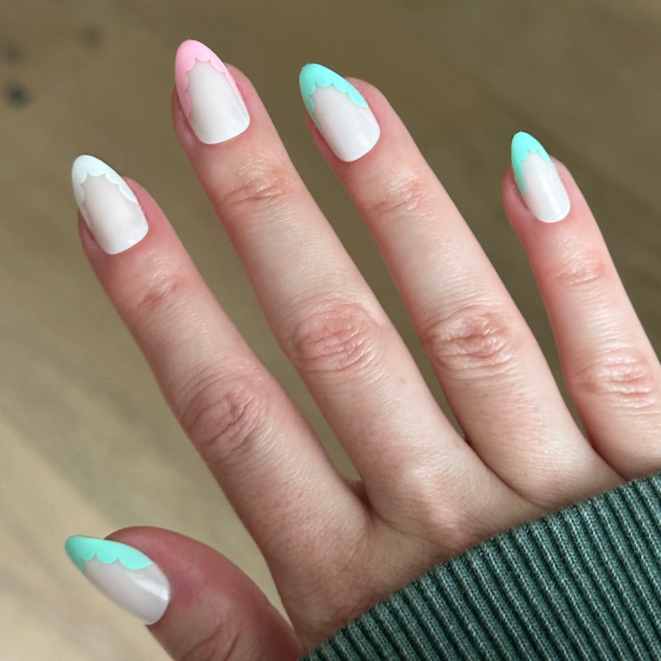 Subtle scallop french tips in all the O&J x Bubble collab colors. Sweet! XO SGT