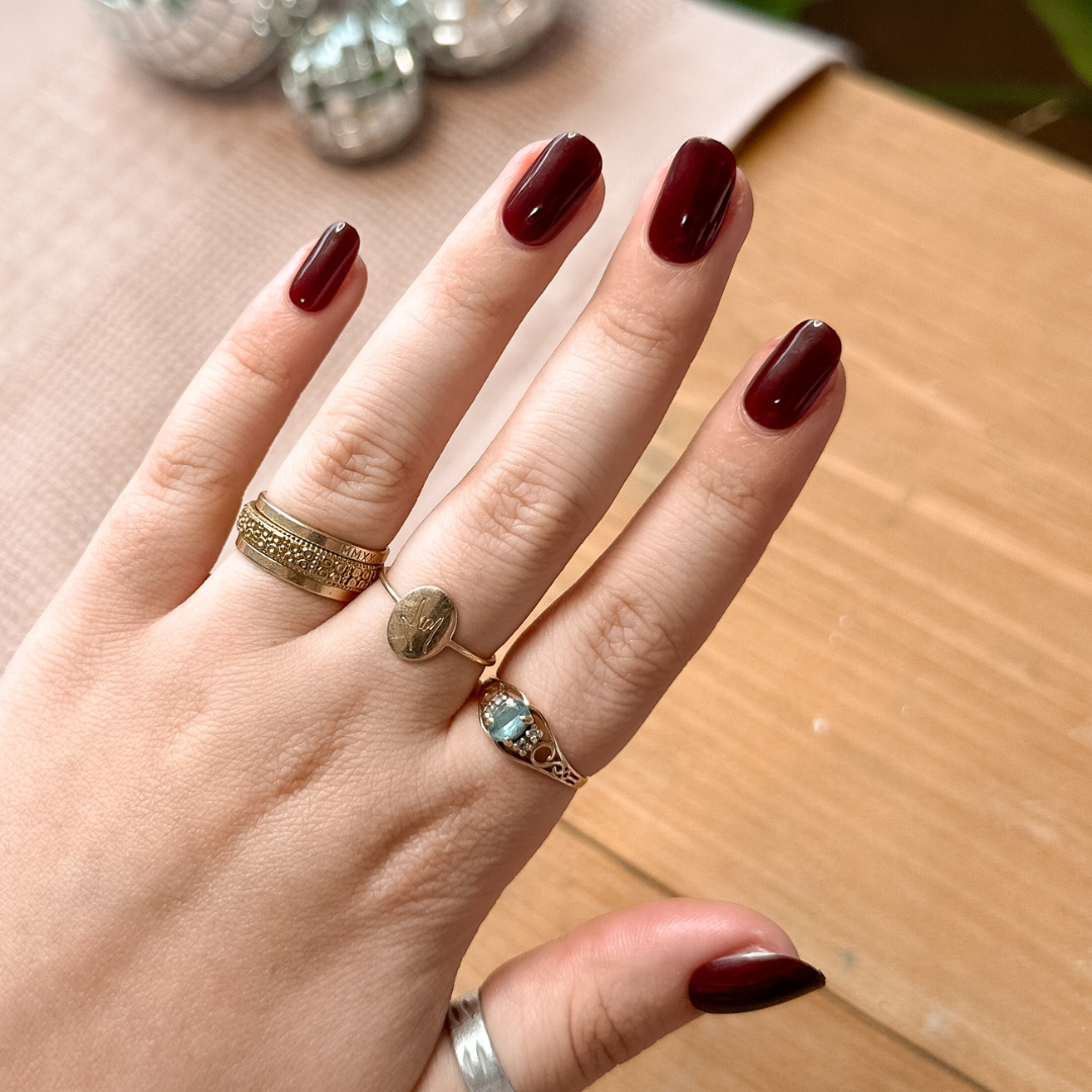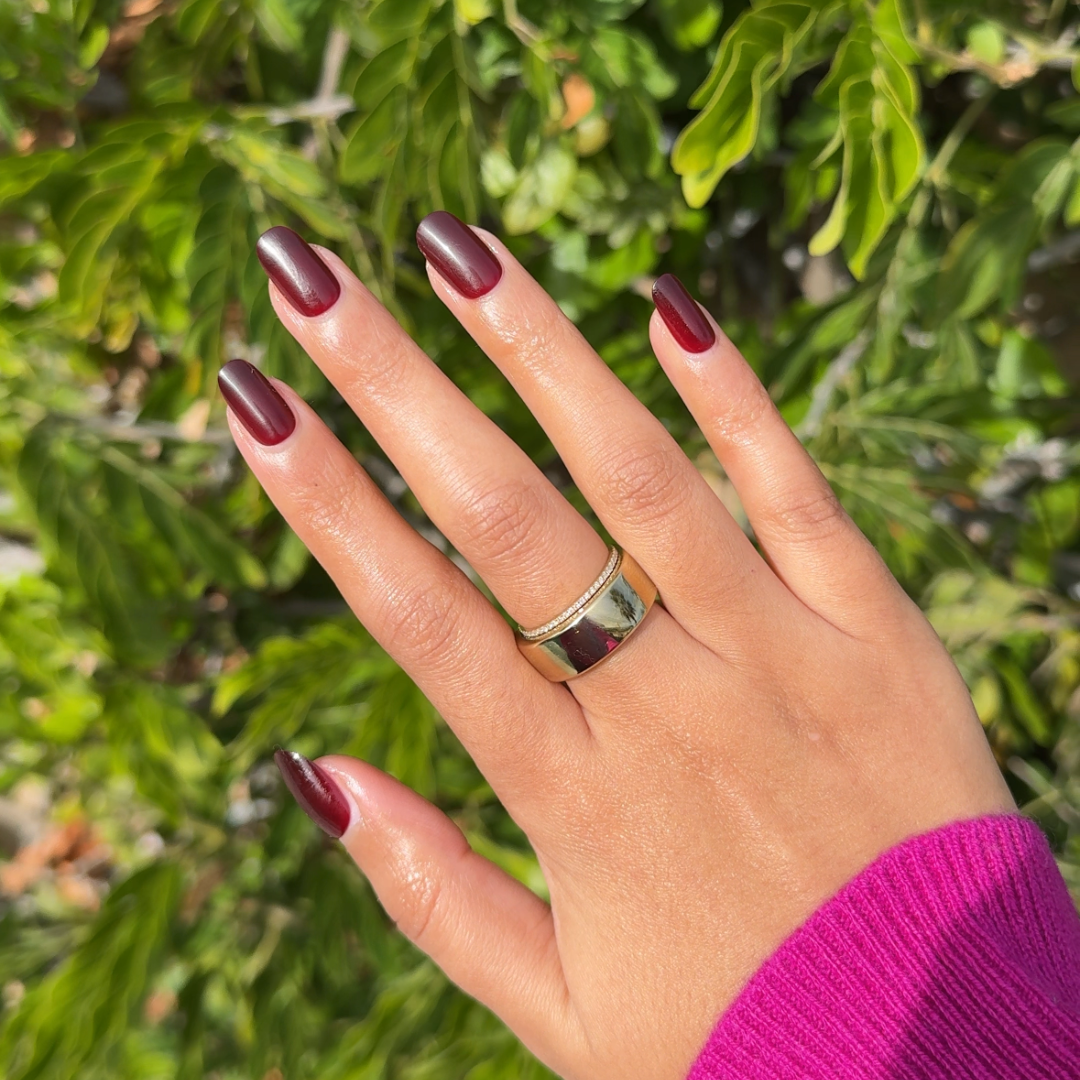 A deep wine red with notes of moody sophistication and effortless edge.